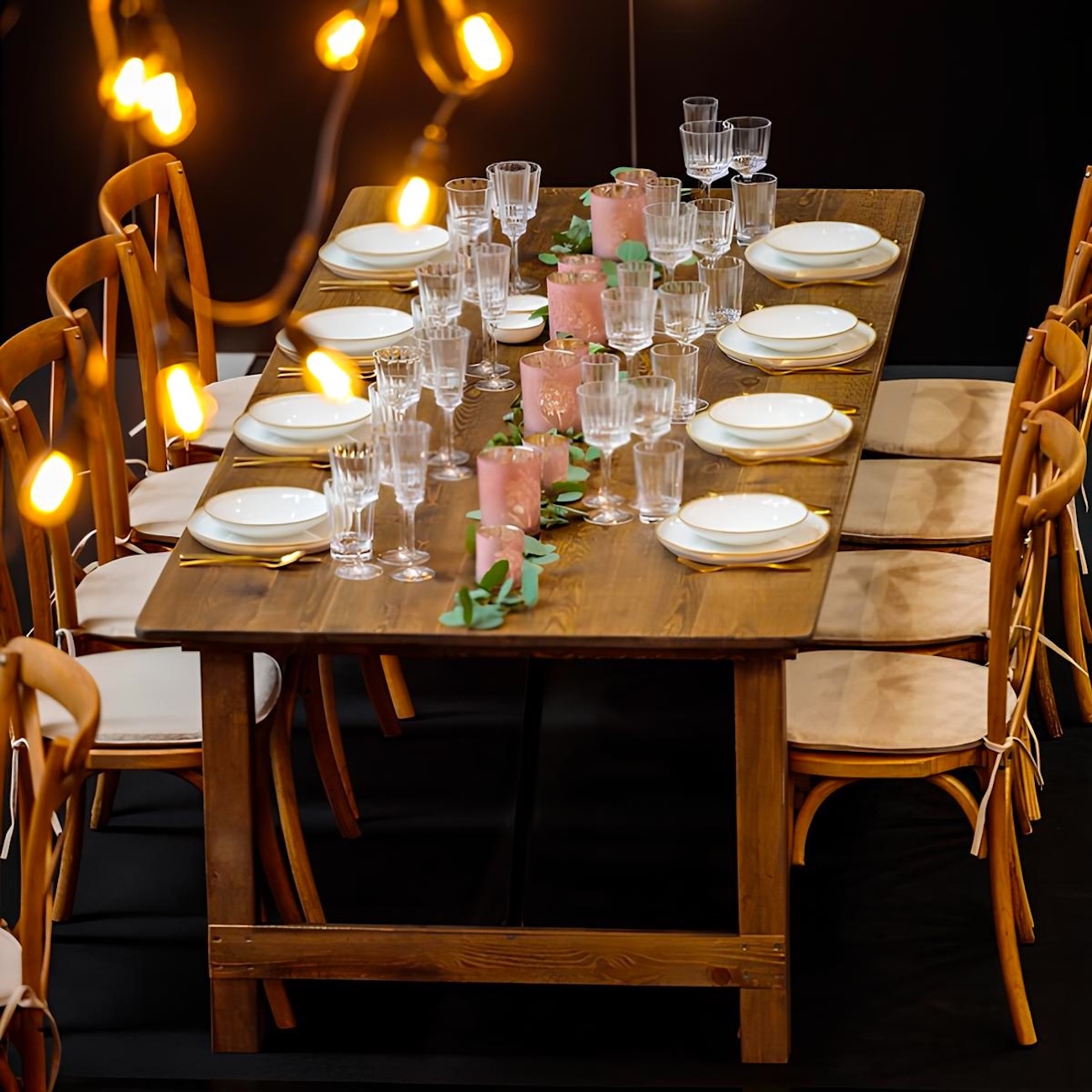 Mesele dreptunghiulare oferă o variantă practică pentru evenimentele cu un număr mare de participanți precum nunți, botezuri, petreceri private și corporate. Prin unirea meselor dreptunghiulare se pot obține aranjamente variate.