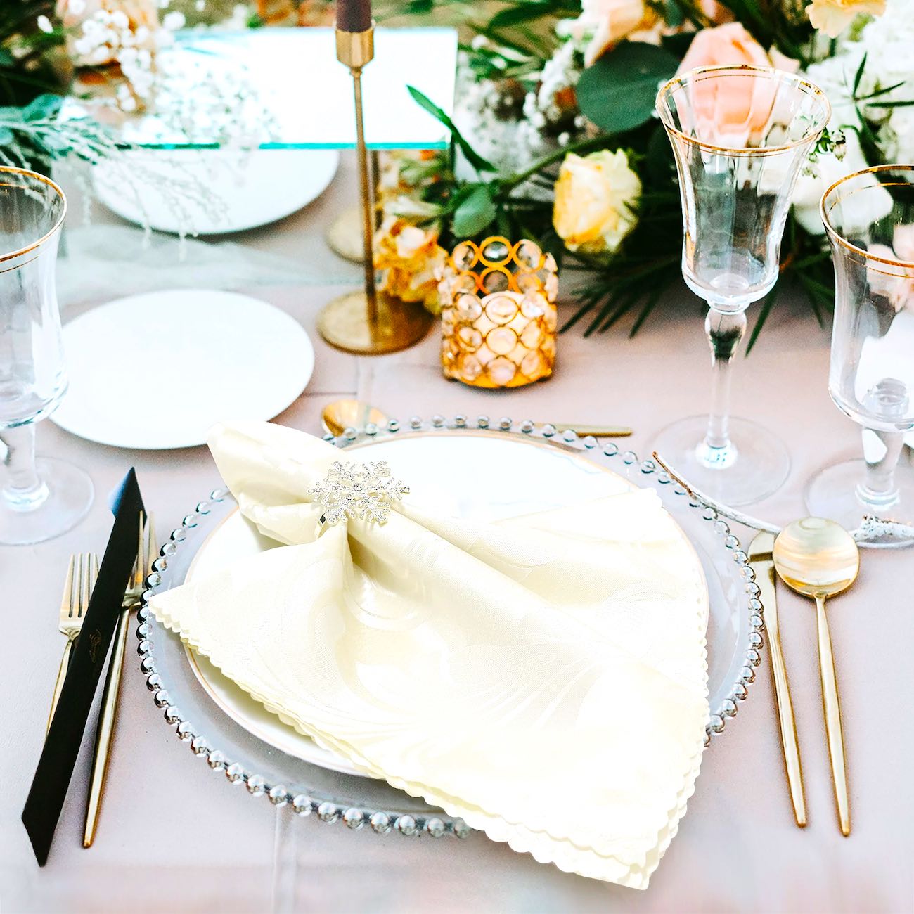 Șervetele de masă elegante pentru evenimente sunt confecționate din materiale de cea mai bună calitate. Șervetele pentru evenimente sunt aranjate conform celor mai noi trenduri și stiluri în materie de decorațiuni ale meselor pentru evenimente speciale.